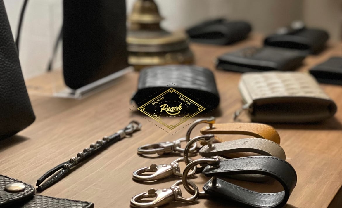ステッチによる模様を施したタグ。着脱が容易なナスカンが付いています。