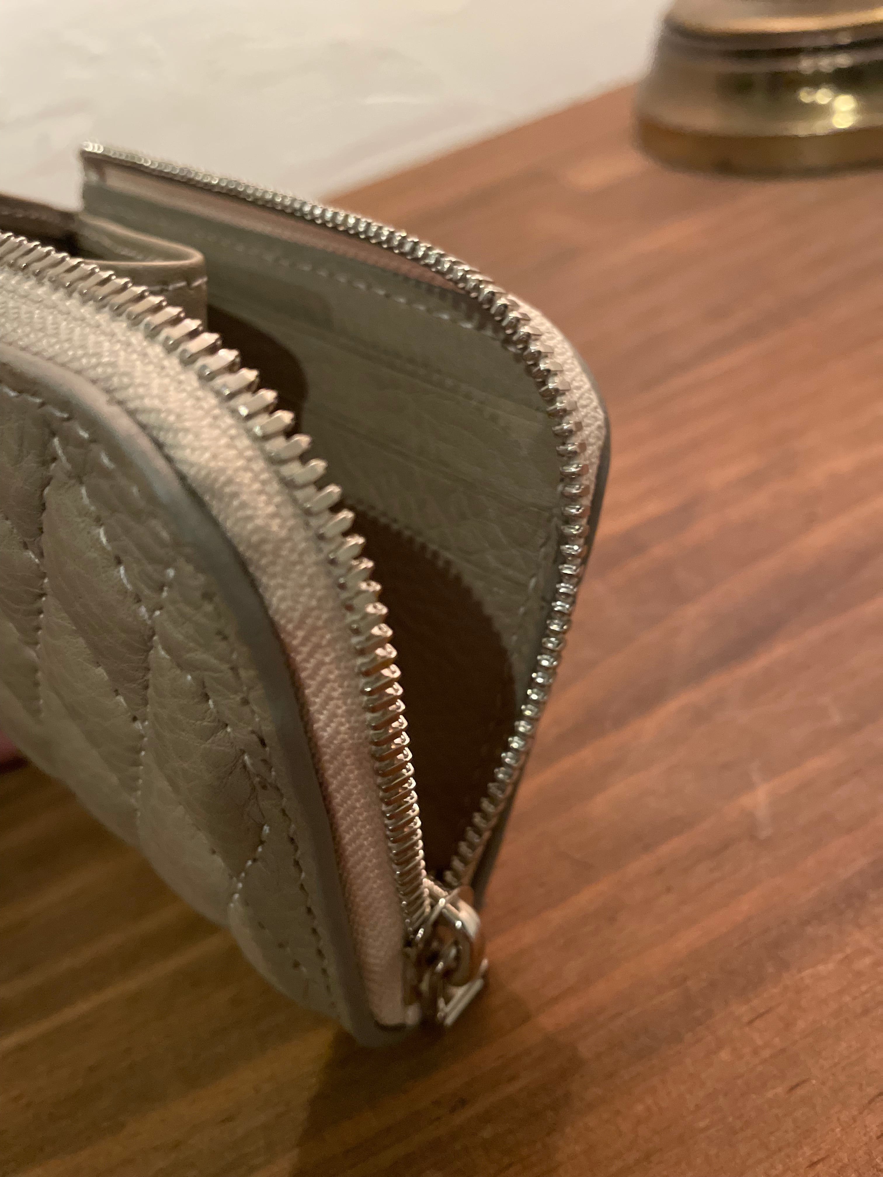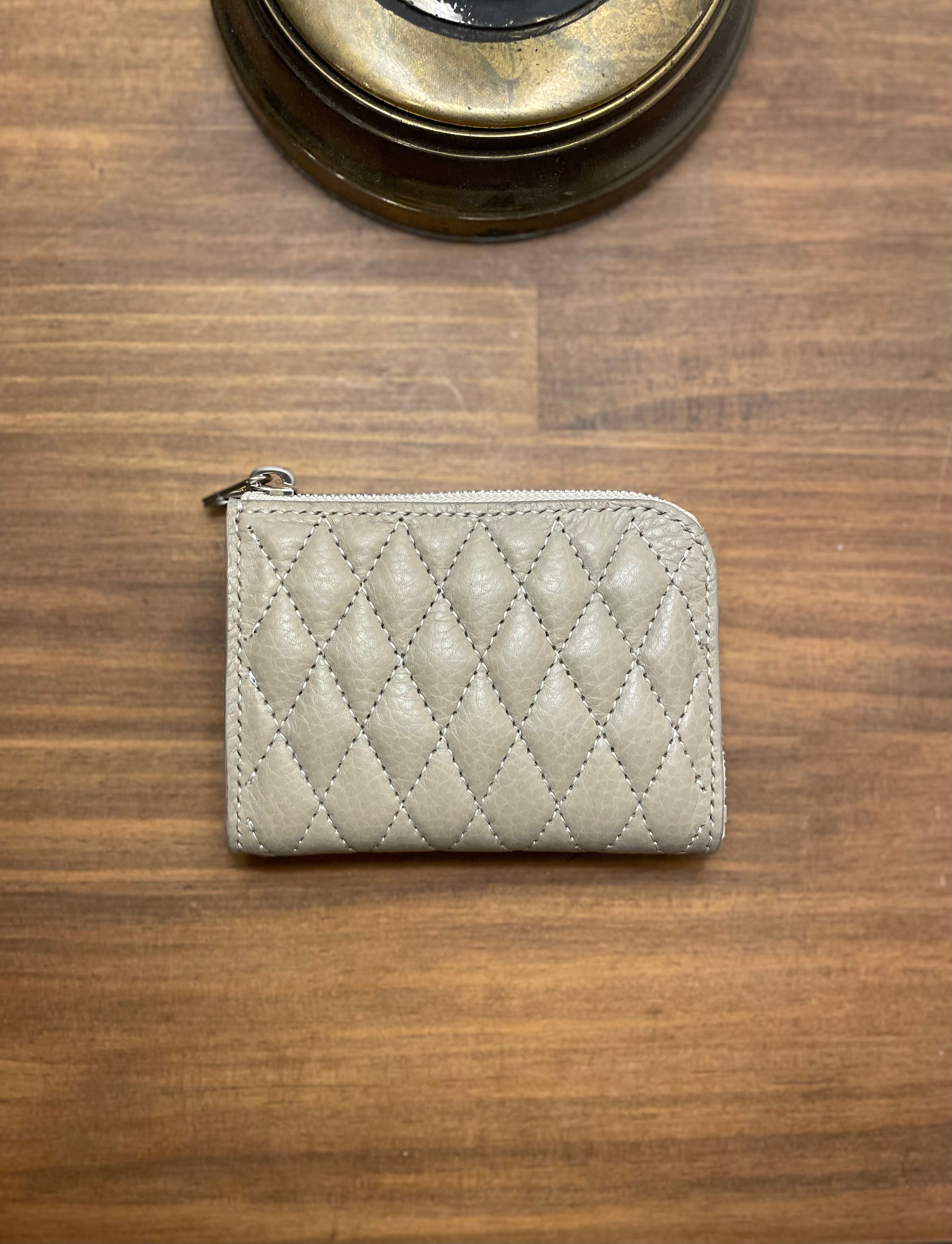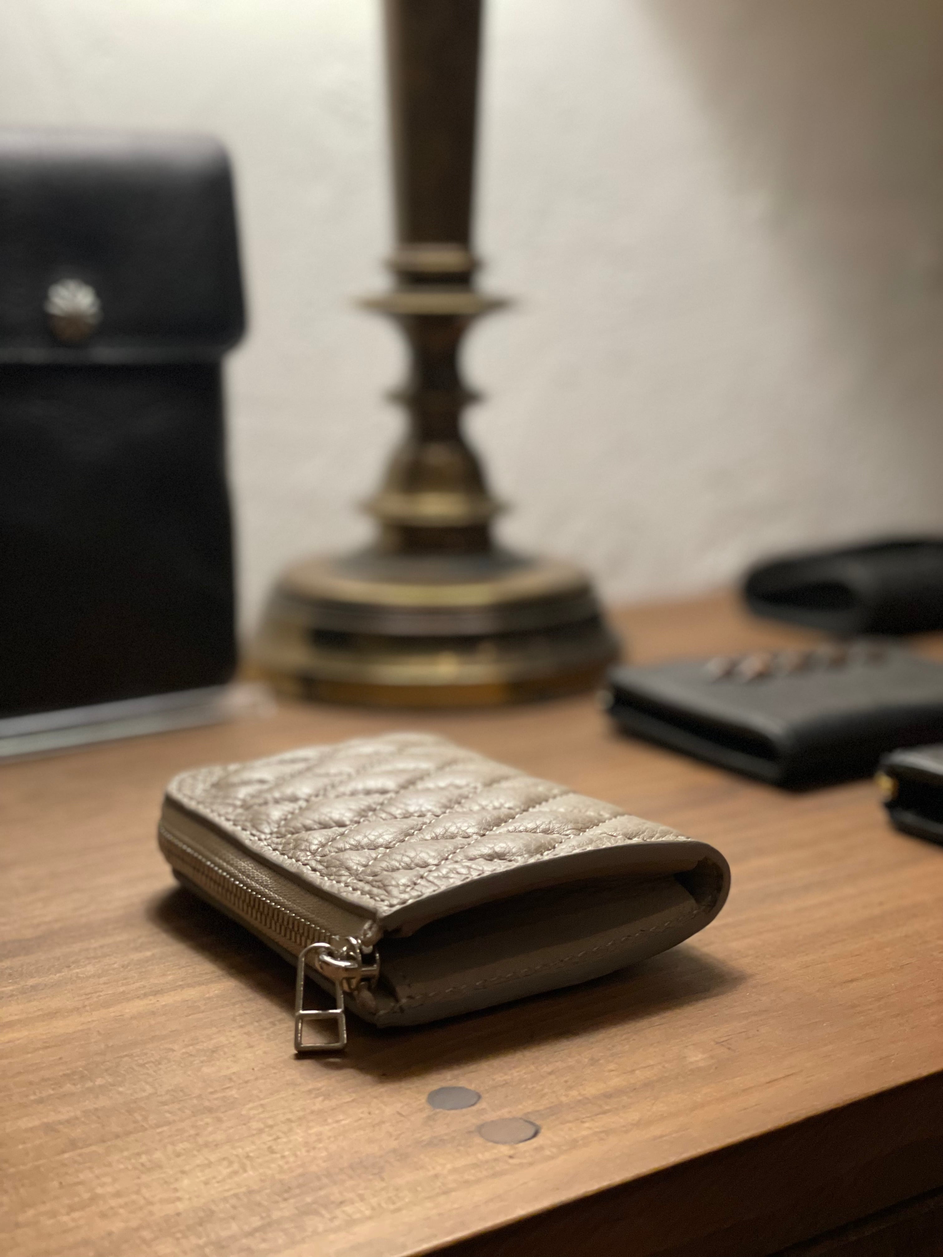 表面にキルティングを施したL型ジップウォレット。