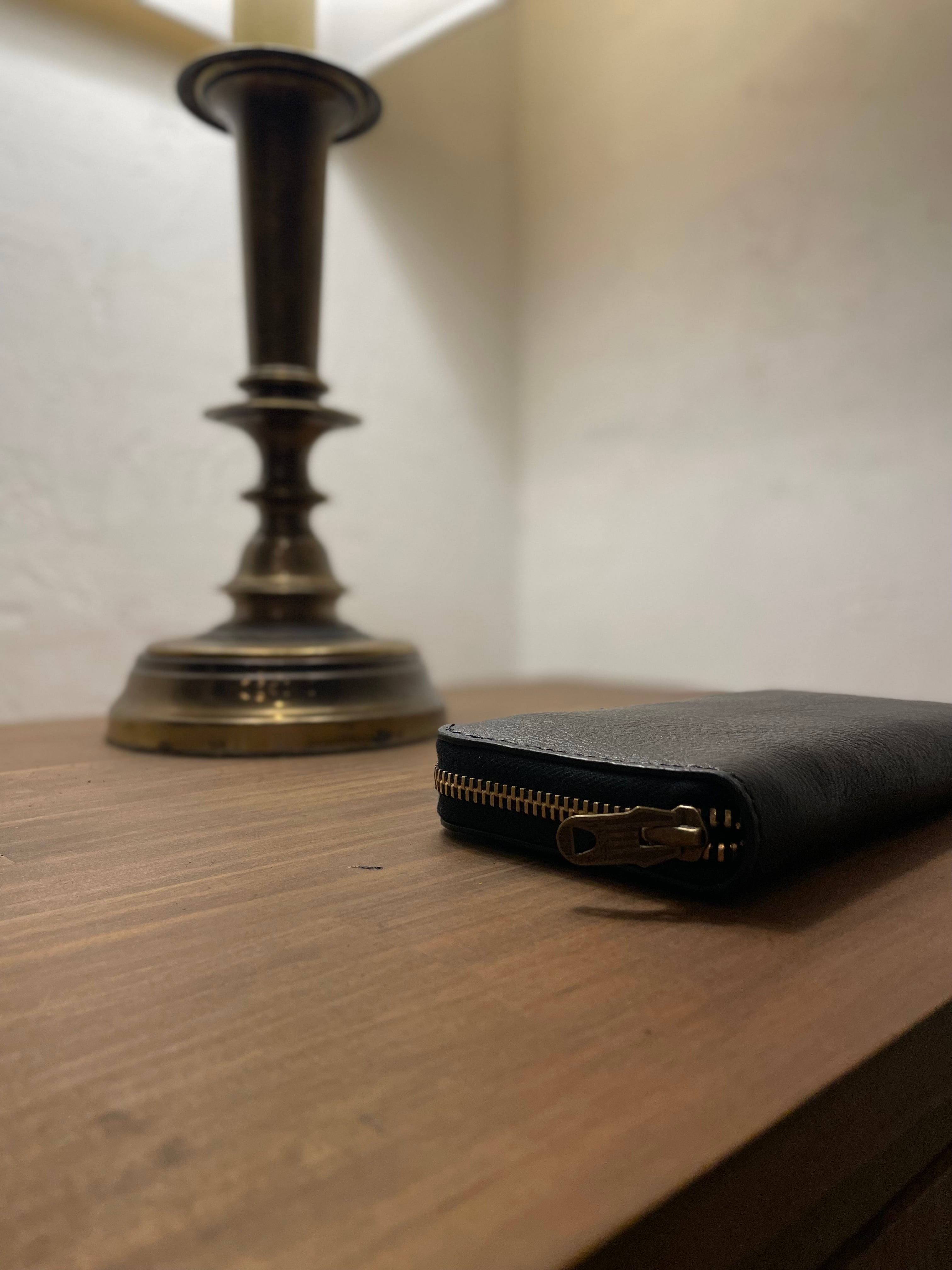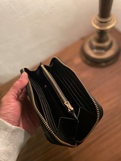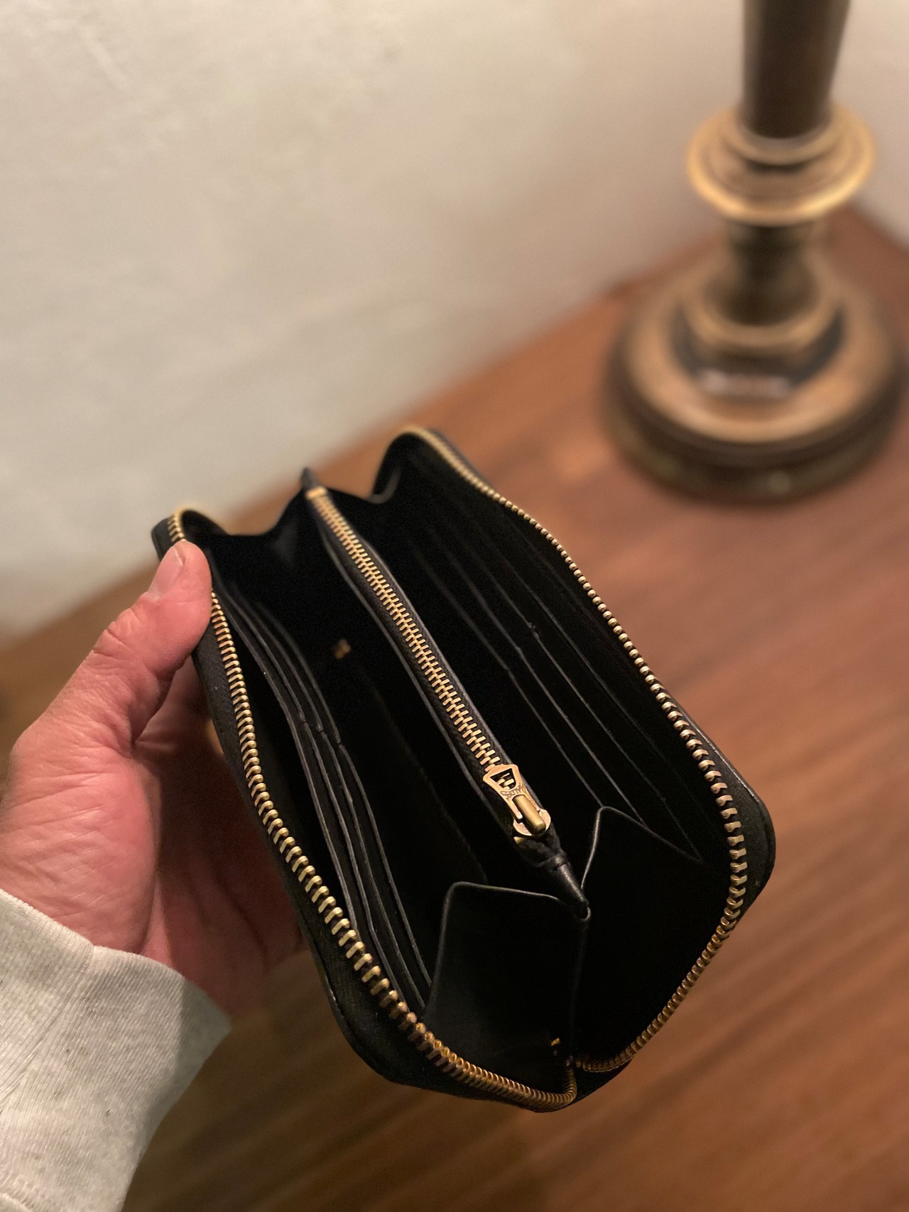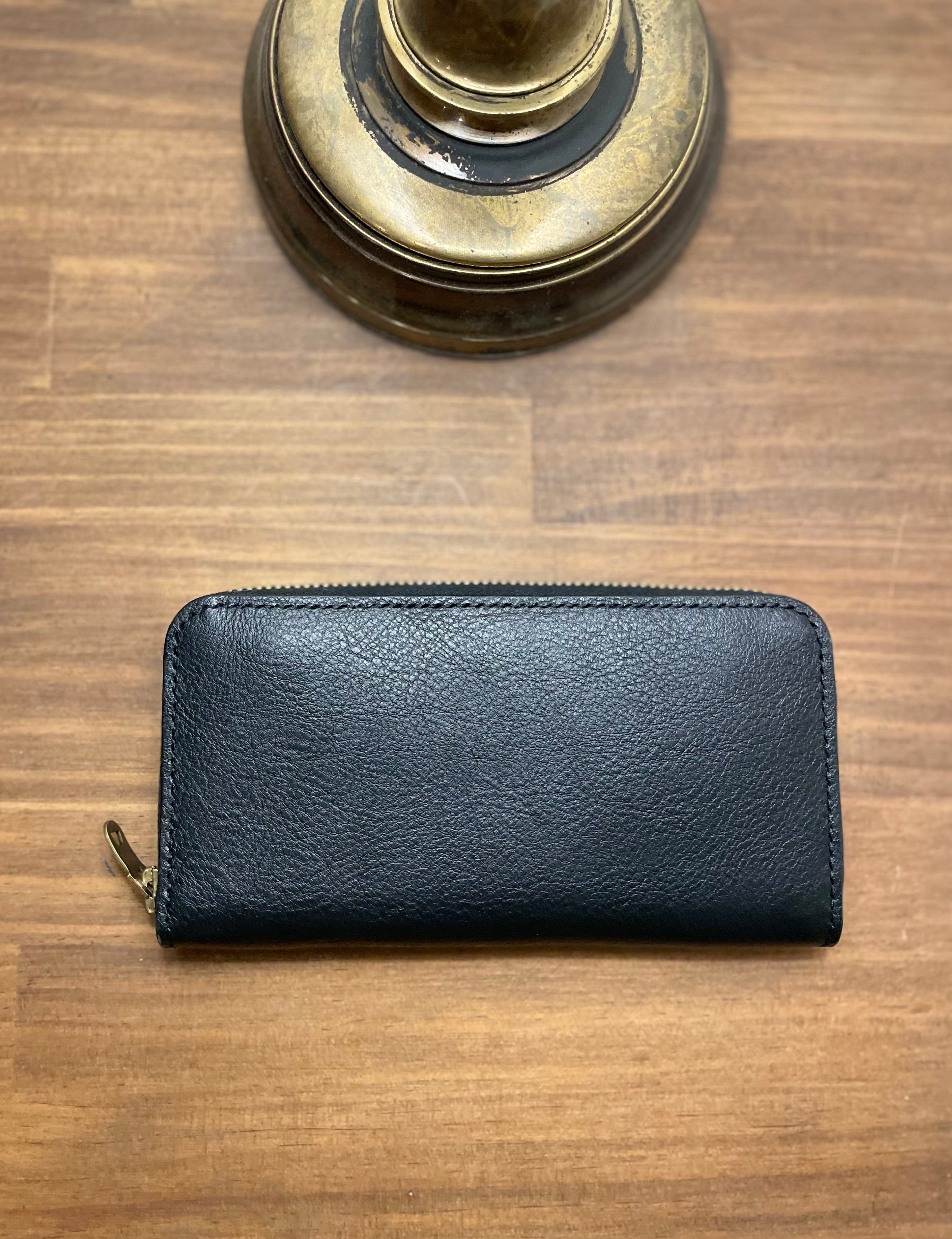 定番型のラウンドジップウォレット。大容量の収容力と、大きさにこだわり、程良いサイズ感となっております。