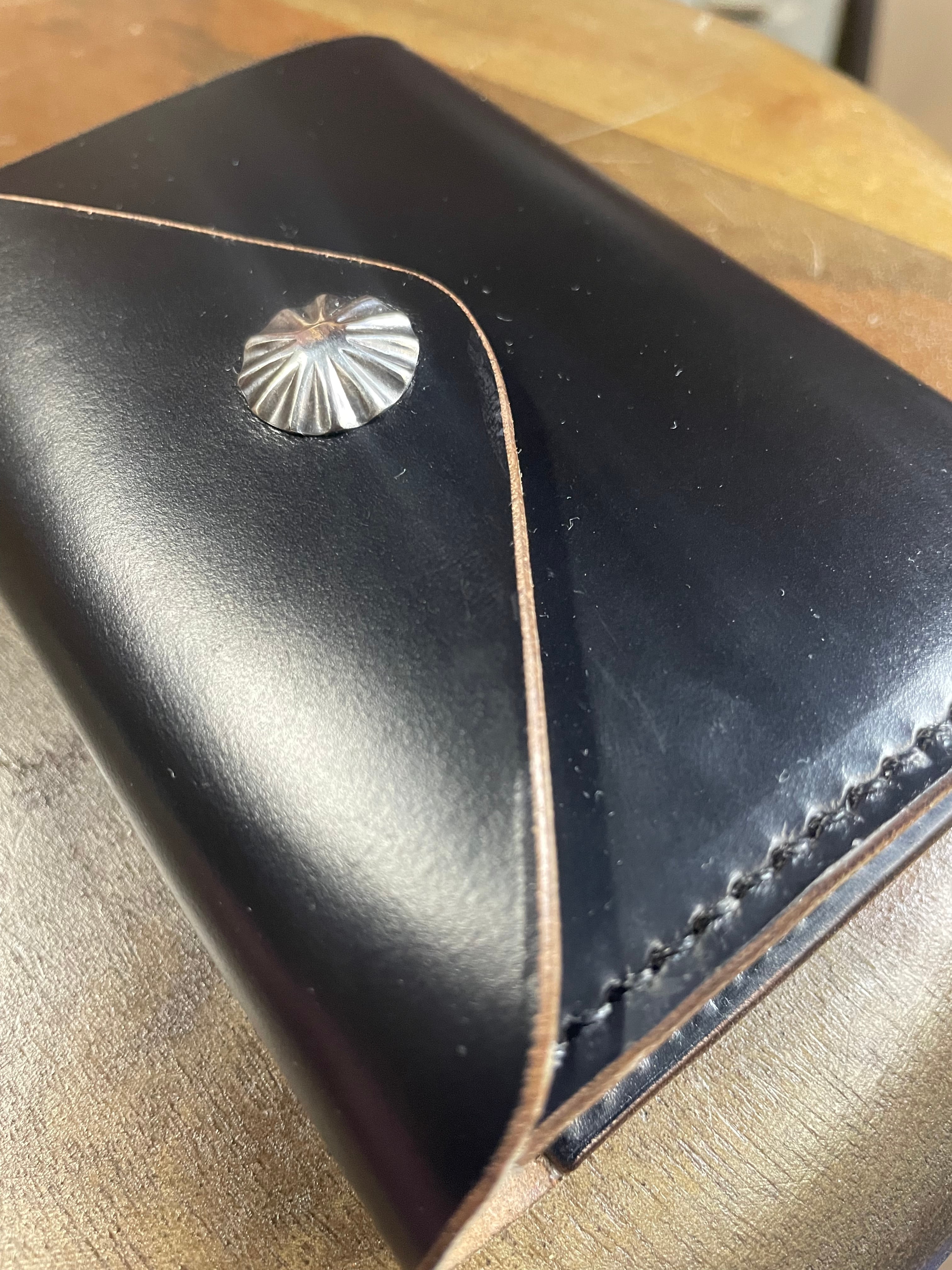 horween社のchromexcelを使用したミドルサイズのwallet。間口広めの小銭入れ、札入れ部分のベロ、コンパクトながら収容力もあり、ポケットにも収まるサイズ感◎コンチョは別注オリジナルシルバーコンチョ。こちらもひとつひとつ職人の手作業にて仕上げていただいております。reach刻印入り